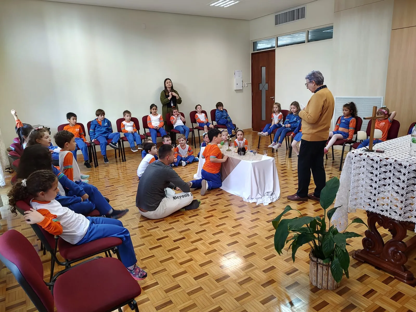No dia 14 de abril, a Capela do Colégio acolheu a celebração conduzida pela Ir. Elena,, nossa Vice-Diretora, onde os pequenos participaram com coração aberto. O coelhinho visitante encantou a todos, trazendo ainda mais magia ao momento, e até houve tempo para preparar um delicioso brigadeiro sem fogo!