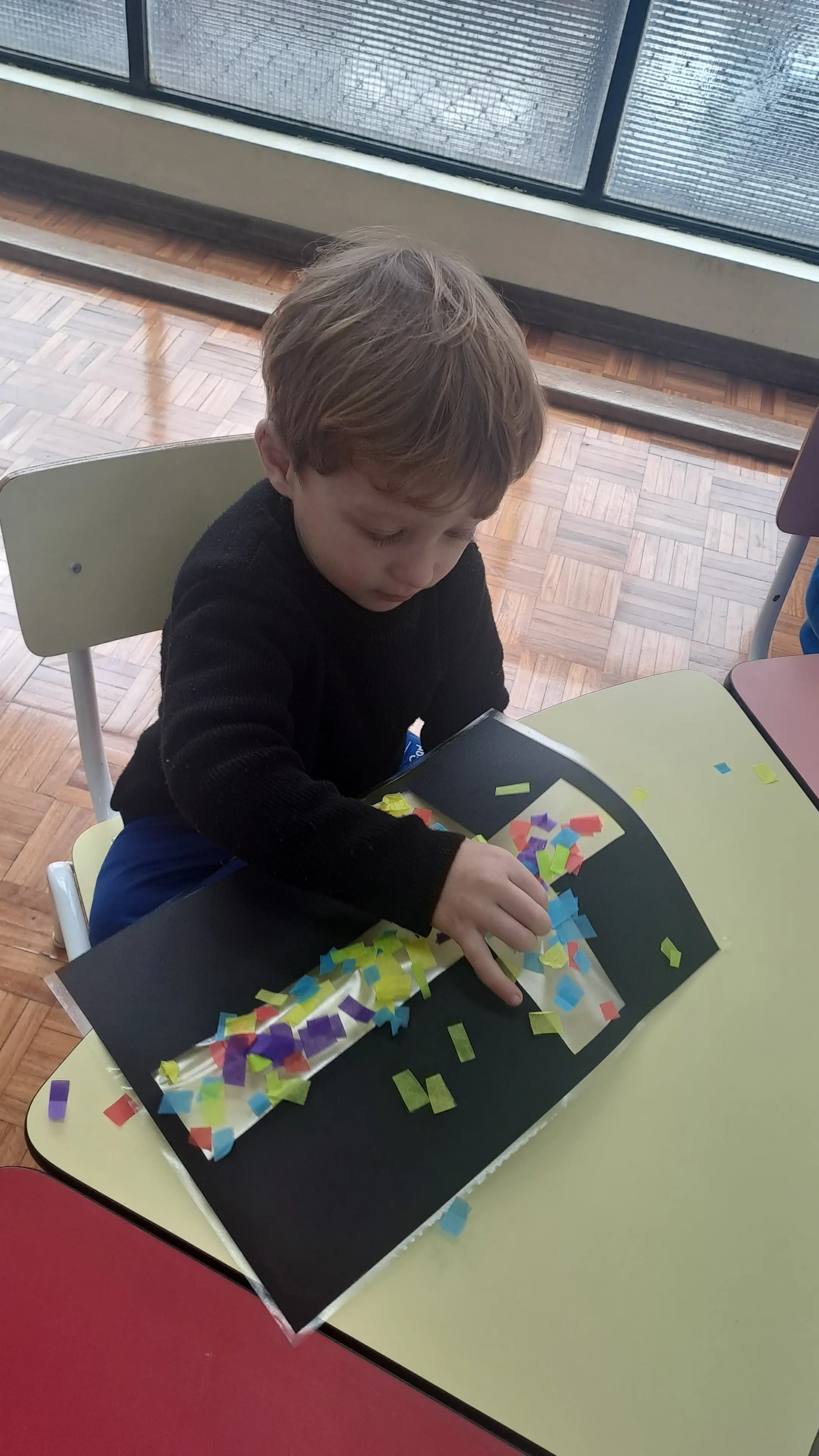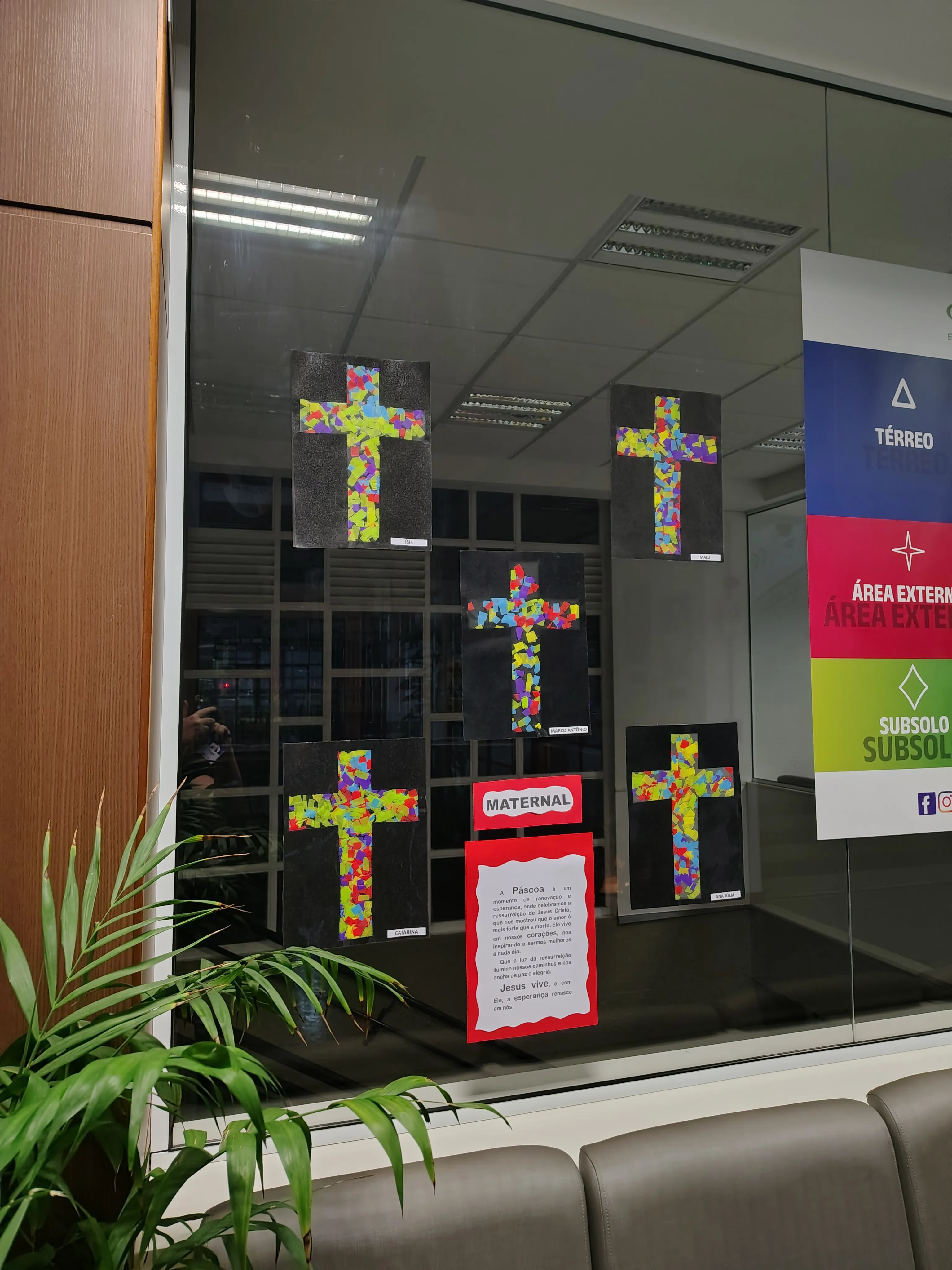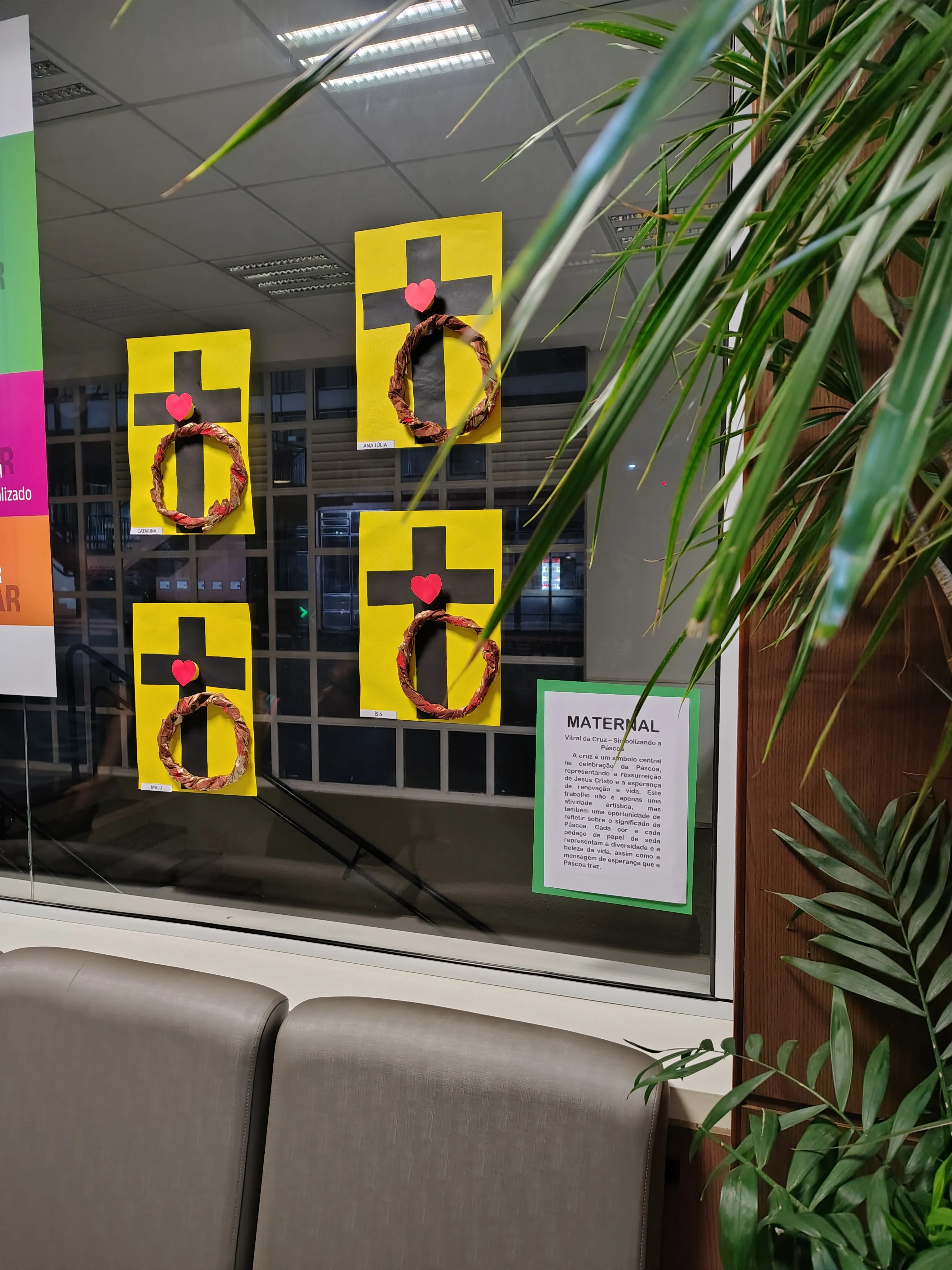 ✨ O Maternal preparou um vitral com a cruz e a coroa de espinhos de Jesus.