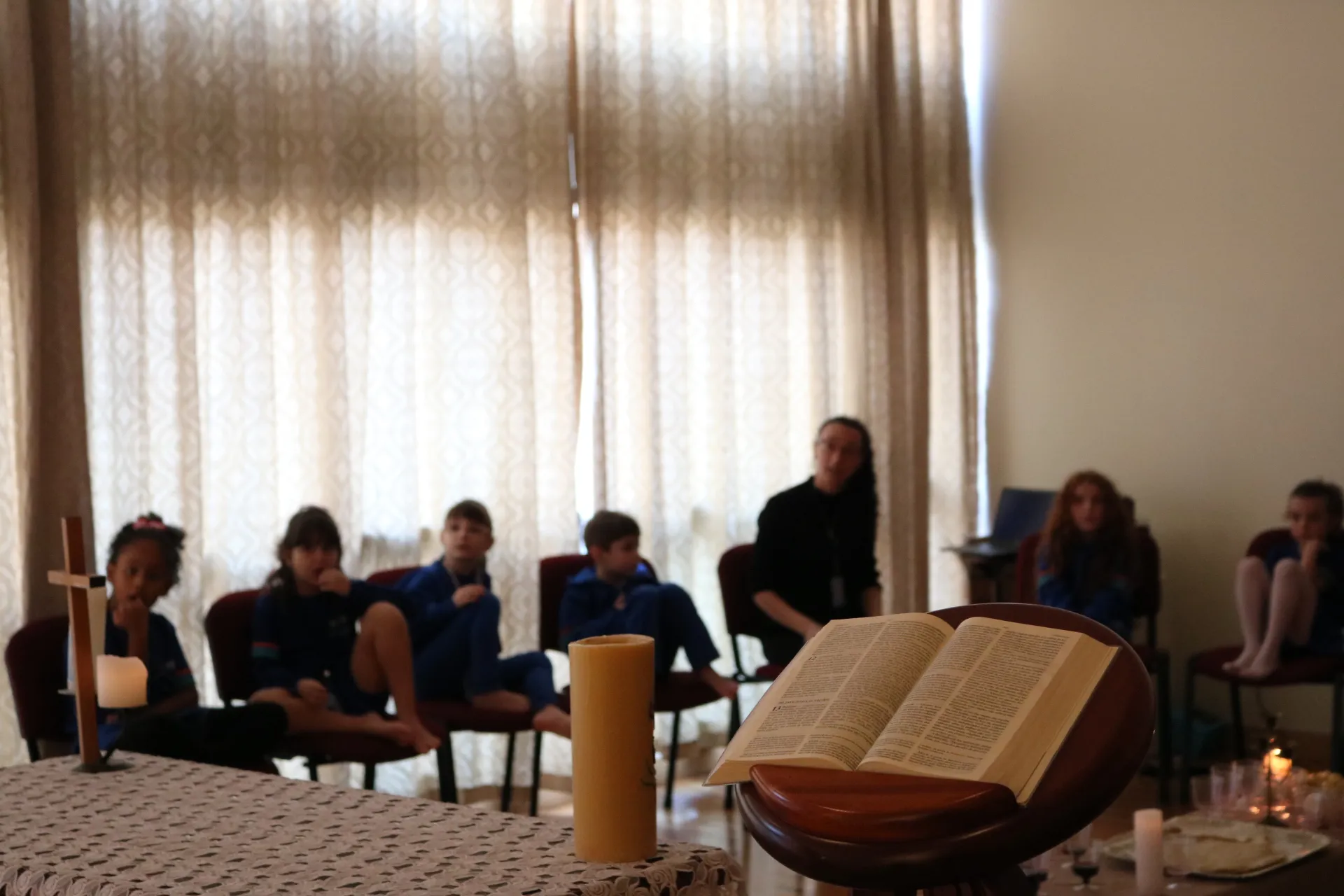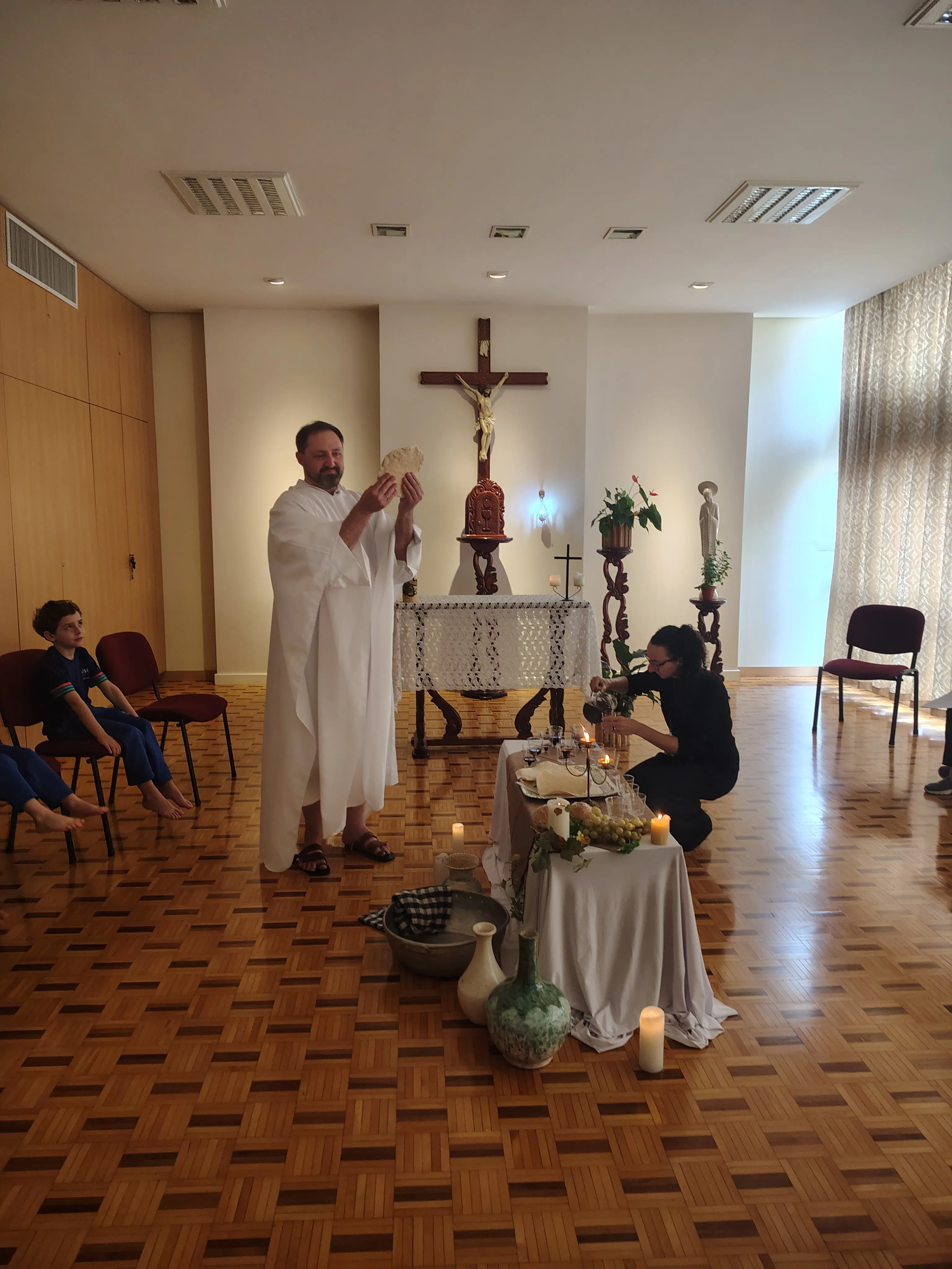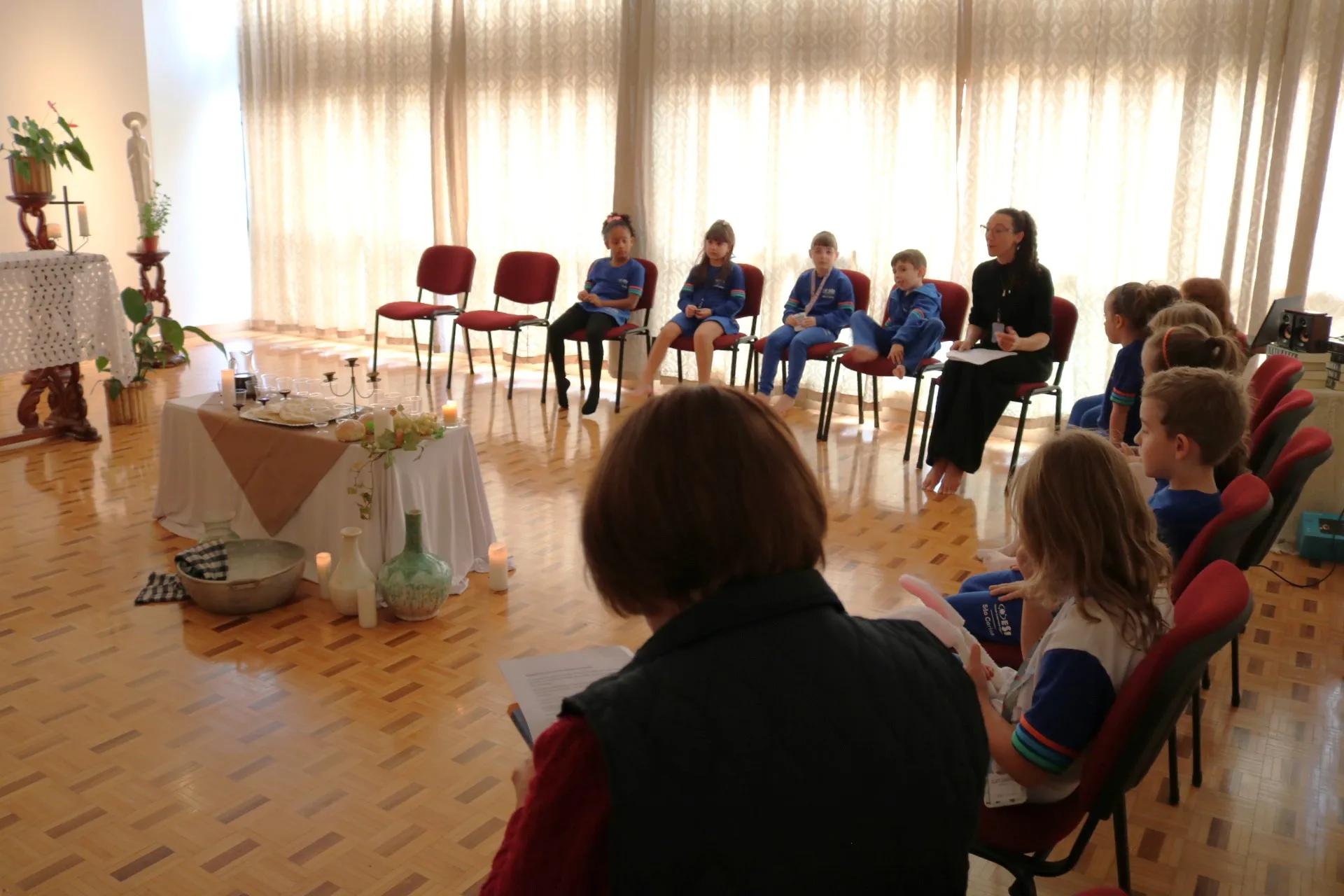 Através da encenação, as crianças puderam compreender, com sensibilidade e encantamento, o verdadeiro significado da Páscoa: o amor que se doa, o serviço ao próximo e a presença viva de Jesus em nosso meio.