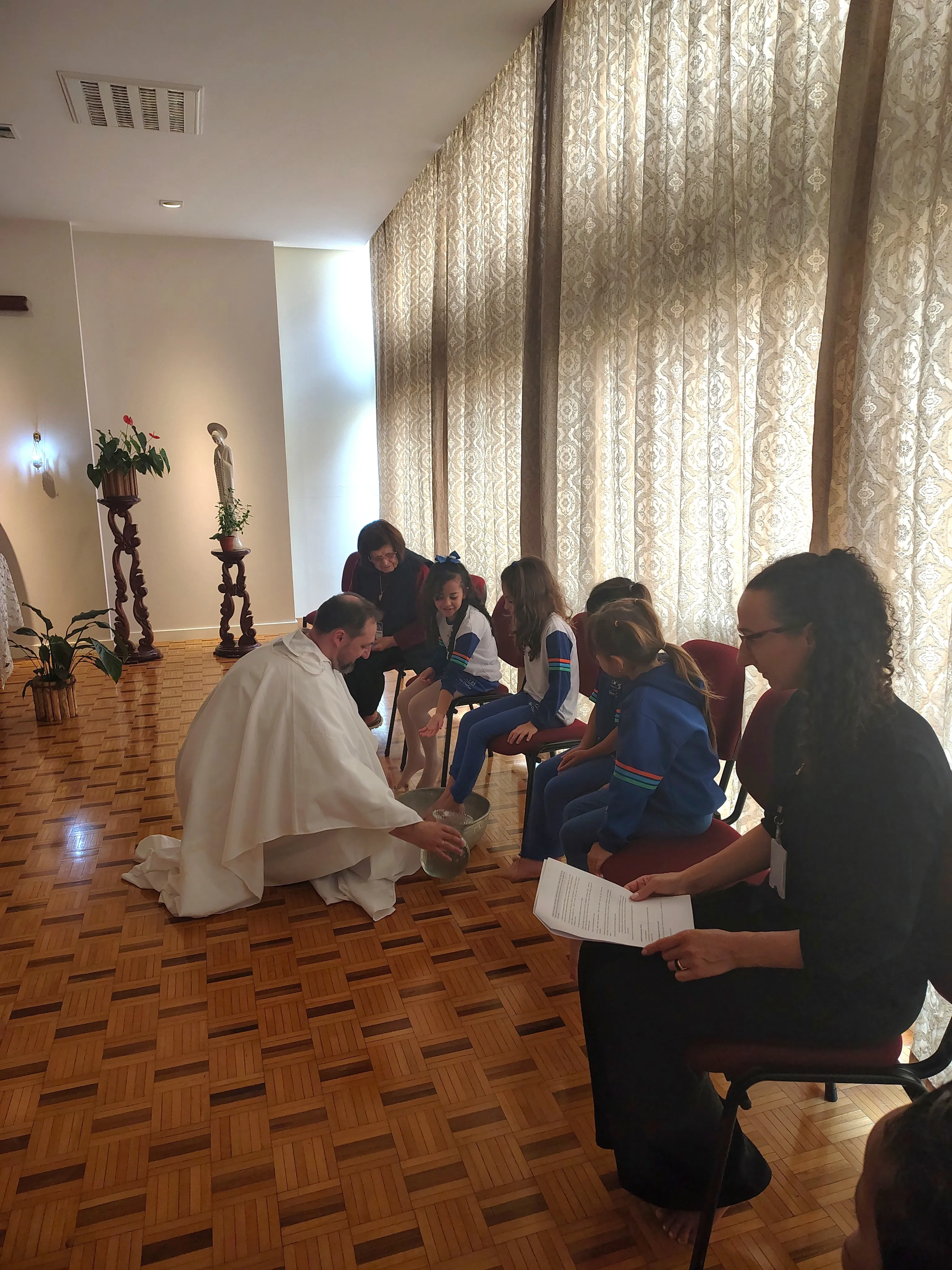 Em um encontro especial conduzido pela Pastoral e pela Ir. Celide, cada turma participou de uma verdadeira experiência de fé, marcada por gestos simbólicos como o lava-pés, a partilha da Eucaristia e cantigas cheias de espiritualidade.