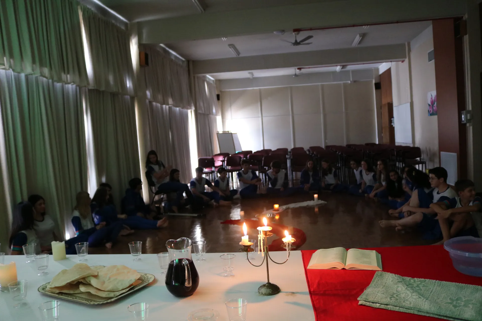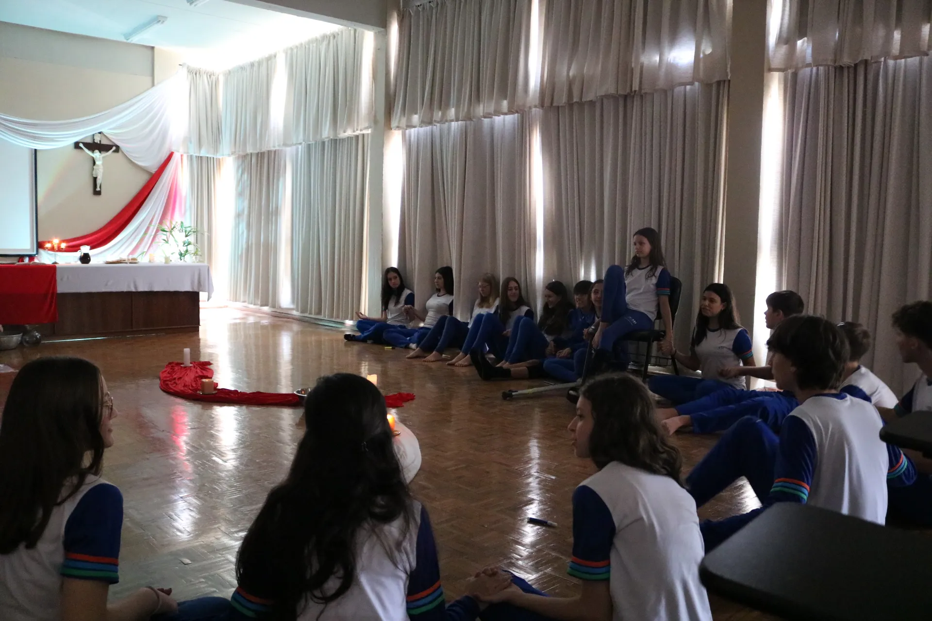 A JUVESC, além de estar com a Pastoral nas celebrações de diversas turmas, realizou seu retiro pascal na quinta-feira, dia 17, em um momento de profunda interiorização e espiritualidade. Os jovens foram convidados a refletir sobre suas falhas, o perdão divino e o chamado ao serviço. A celebração contou com o gesto do lava-pés, dinâmicas significativas e, ao final, a gravação de uma mensagem especial que será enviada aos demais grupos de jovens da rede ESI, fortalecendo a comunhão e o sentido de missão compartilhada. ✨