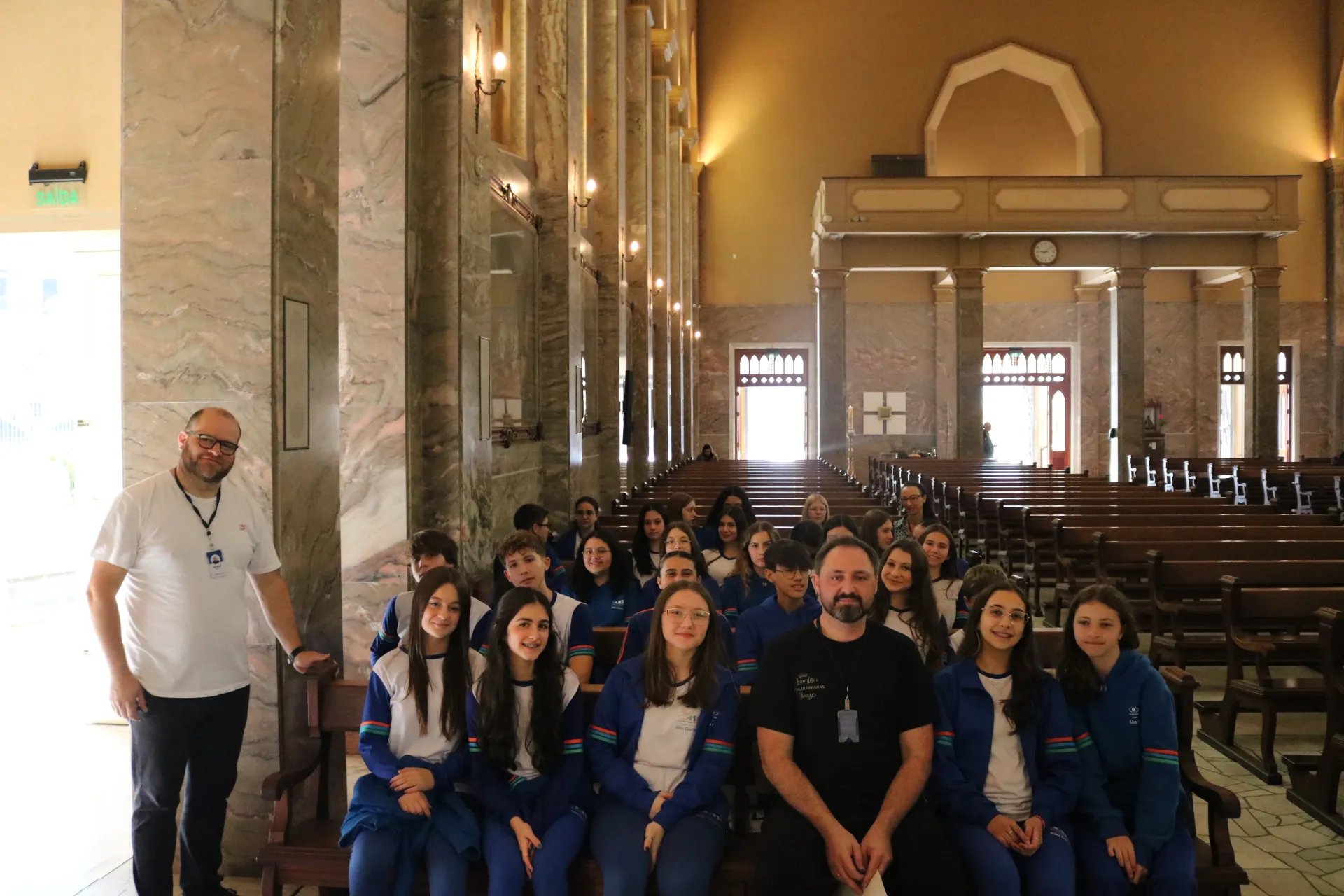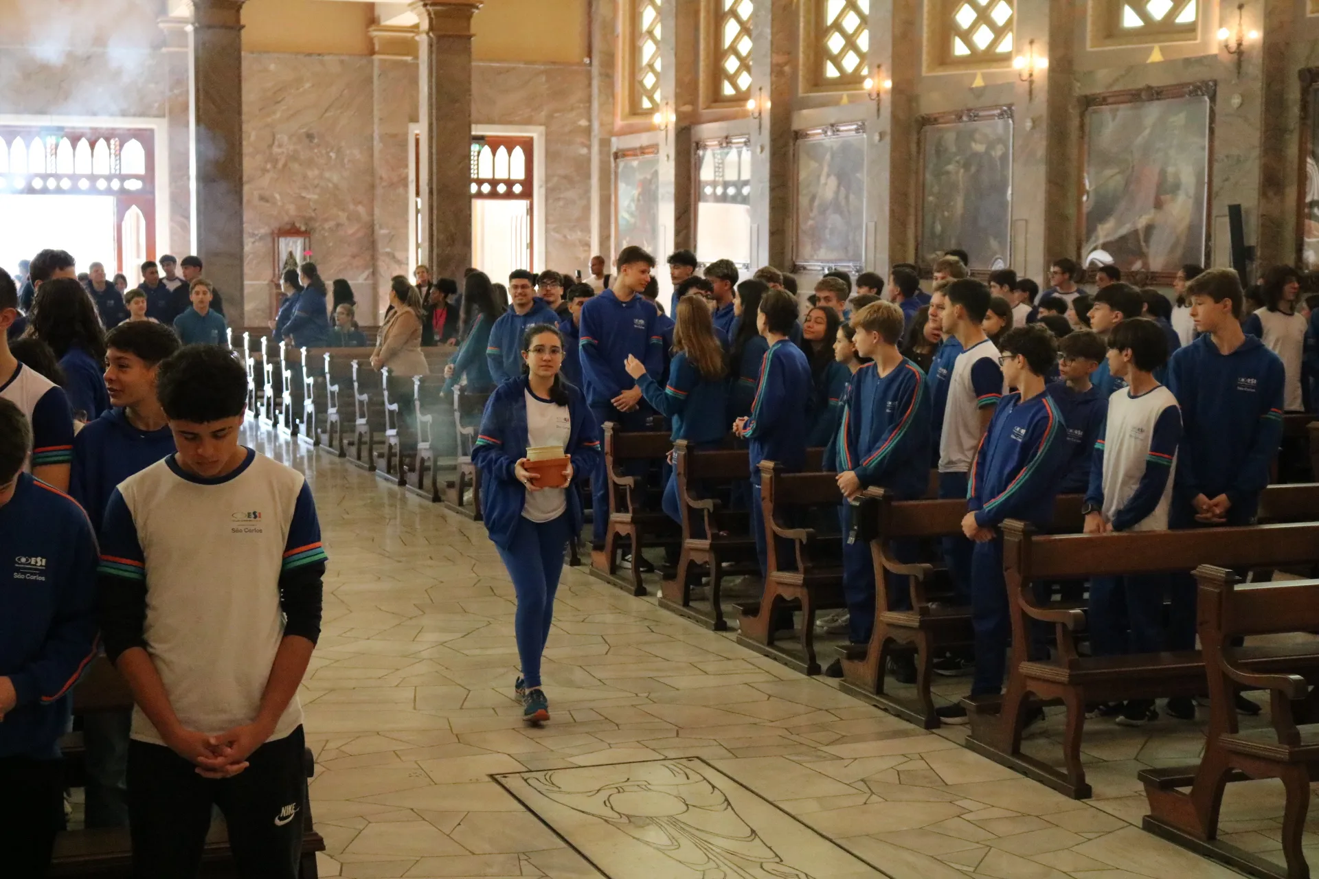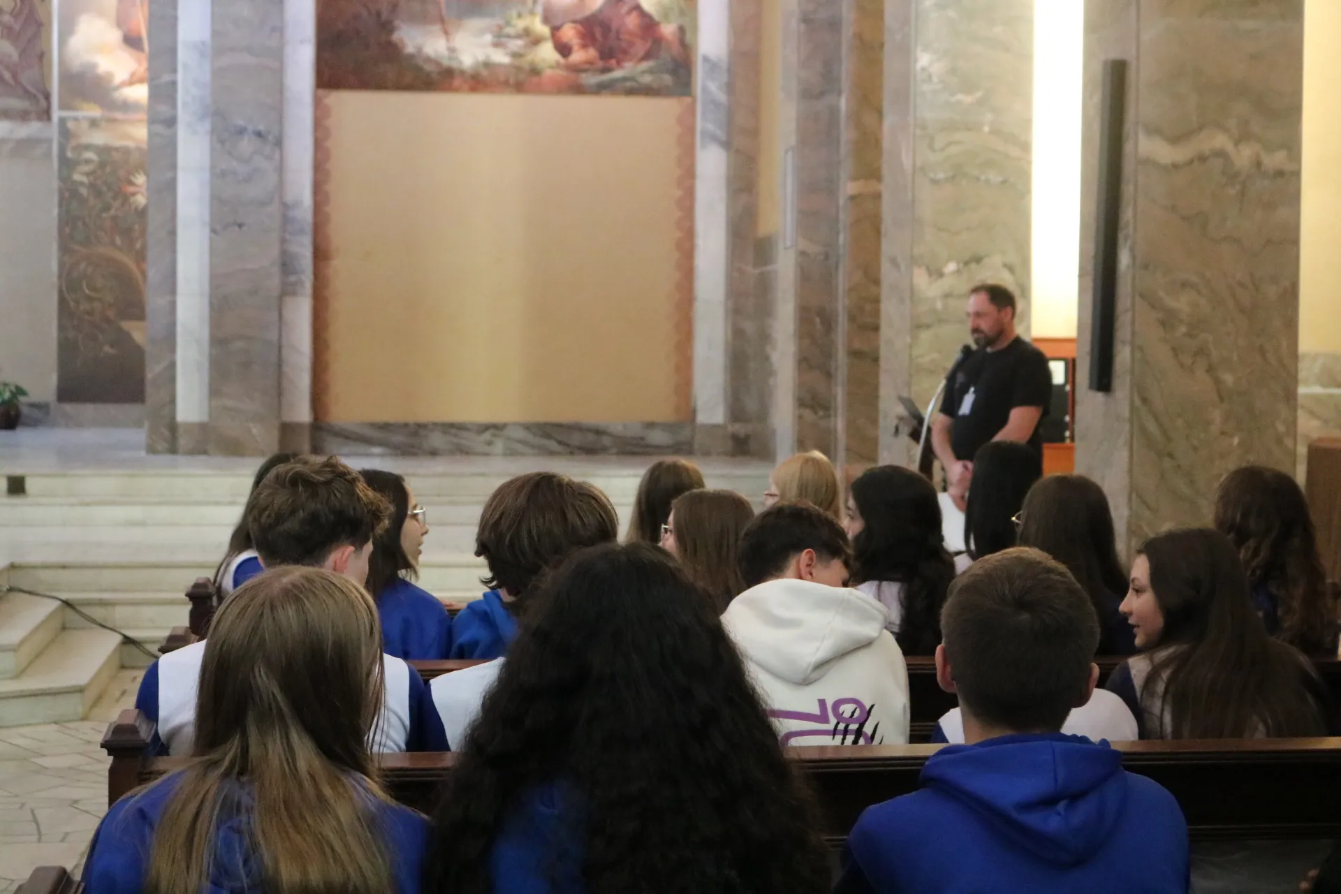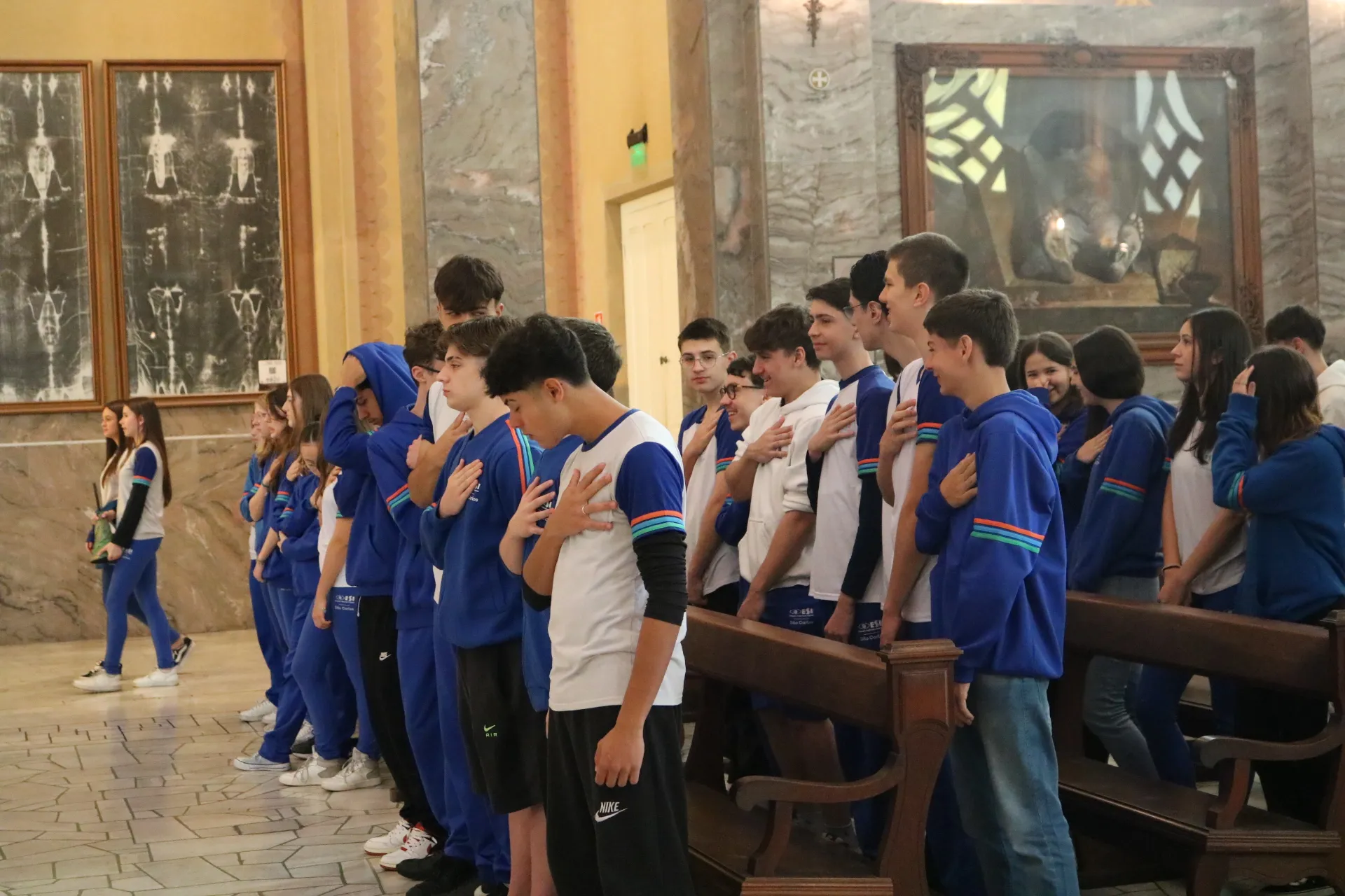Os estudantes do 9º ano e Ensino Médio também viveram sua celebração de Páscoa na Igreja São Pelegrino, num encontro profundo com o mistério da fé cristã. 🙏🌿