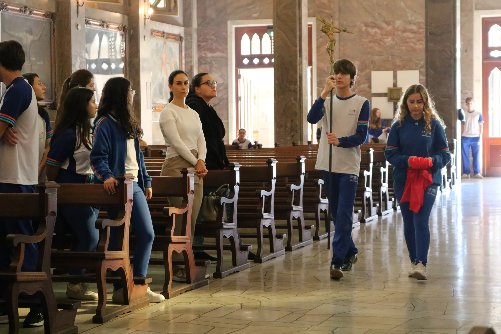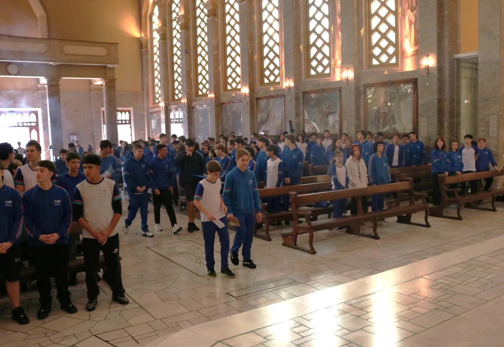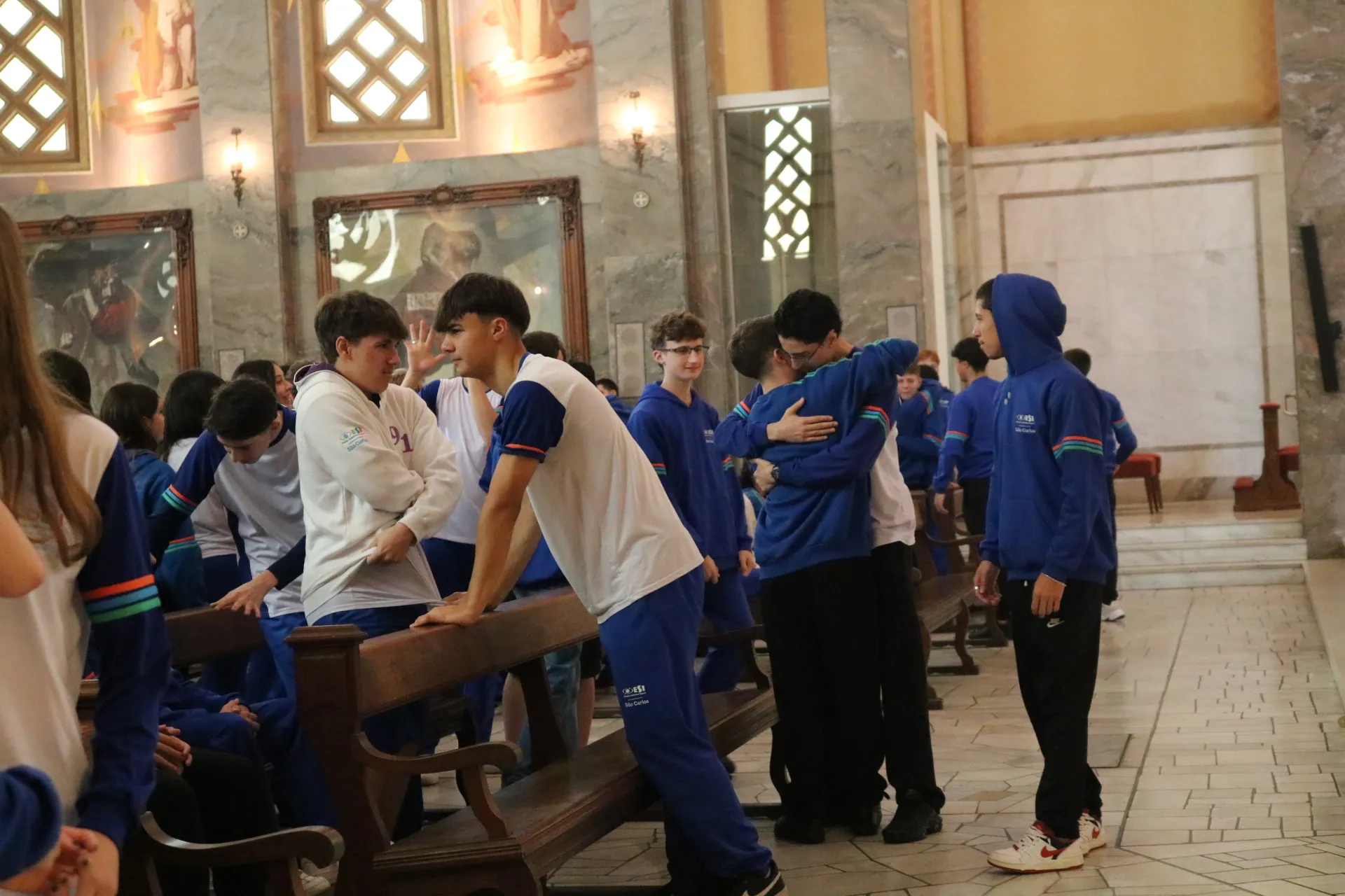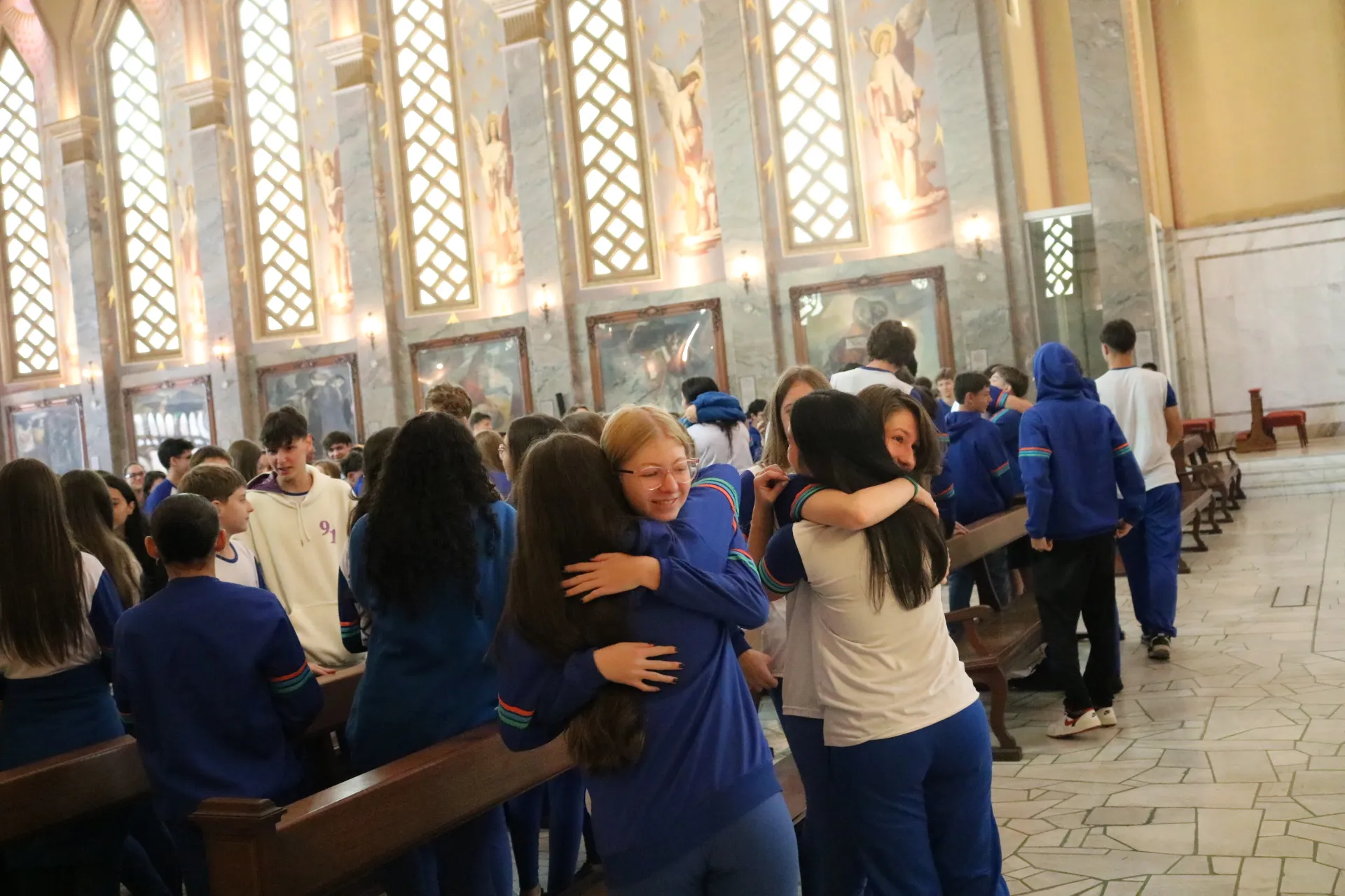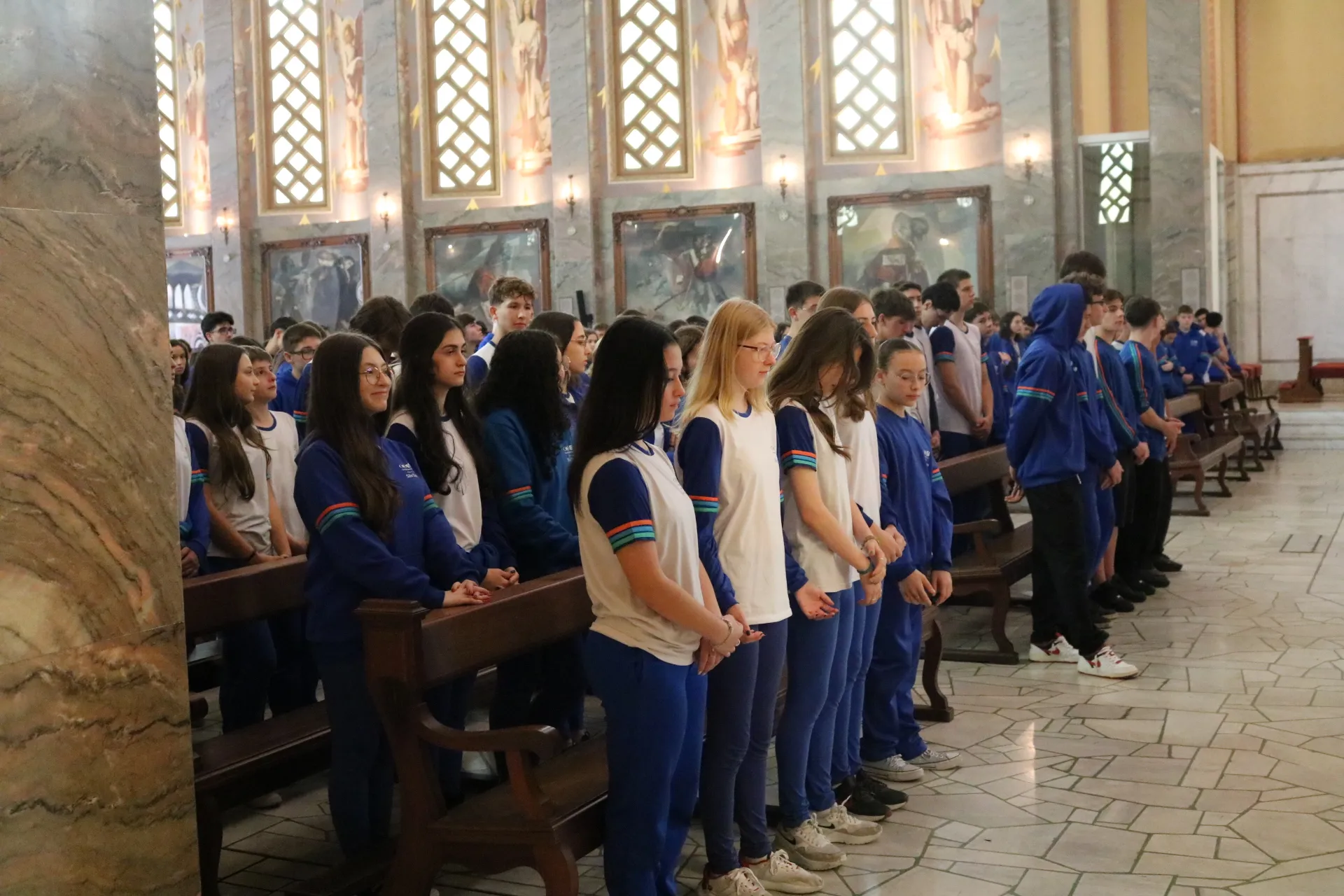 Os estudantes do 9º ano e Ensino Médio também viveram sua celebração de Páscoa na Igreja São Pelegrino, num encontro profundo com o mistério da fé cristã. 🙏🌿