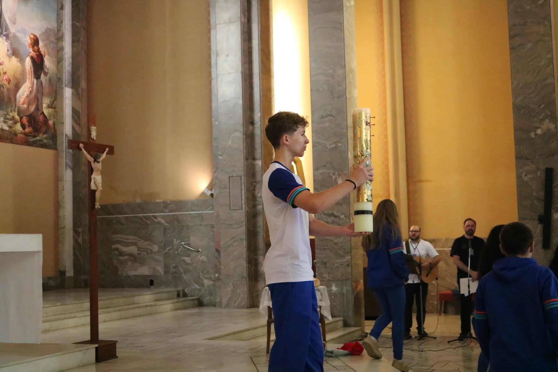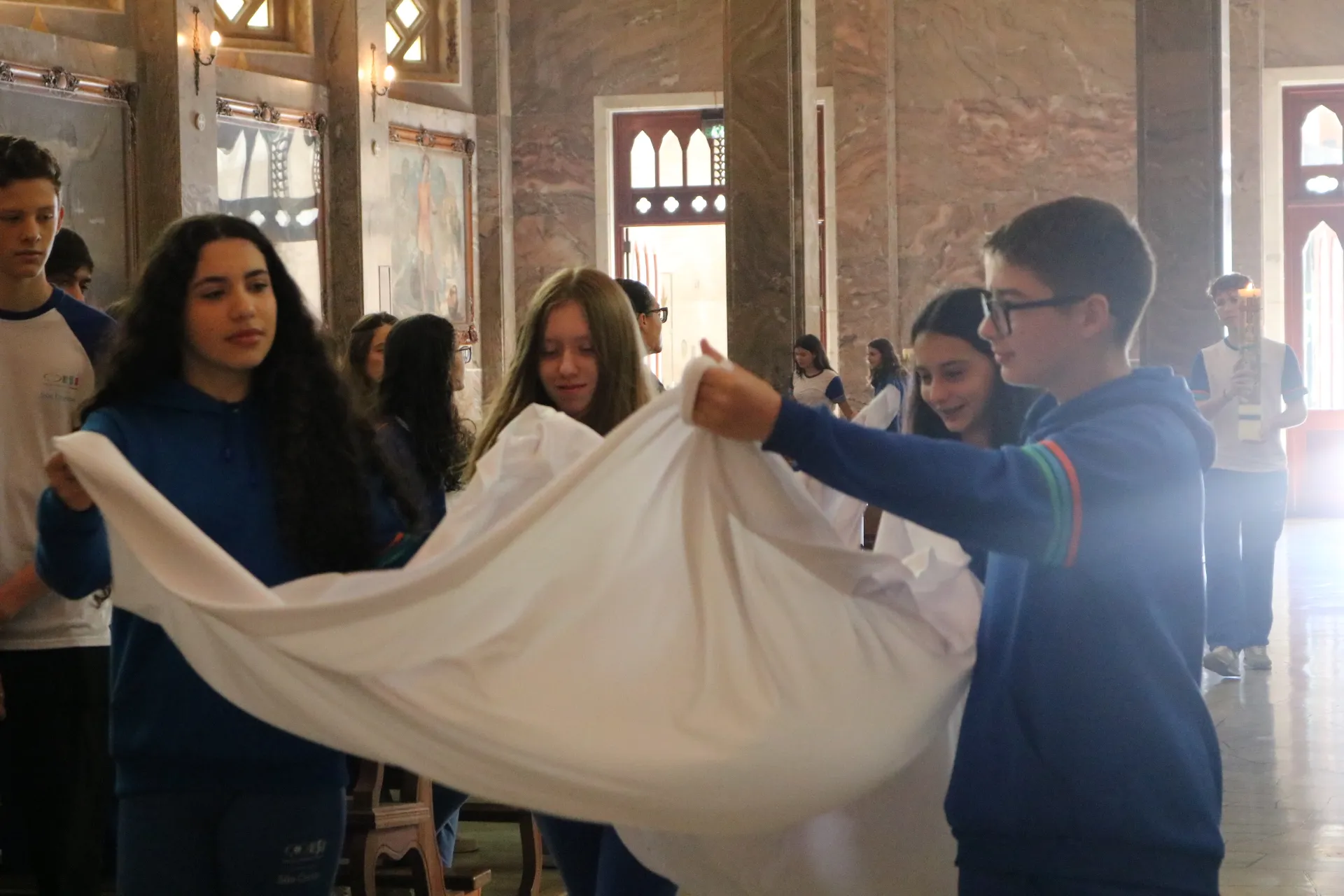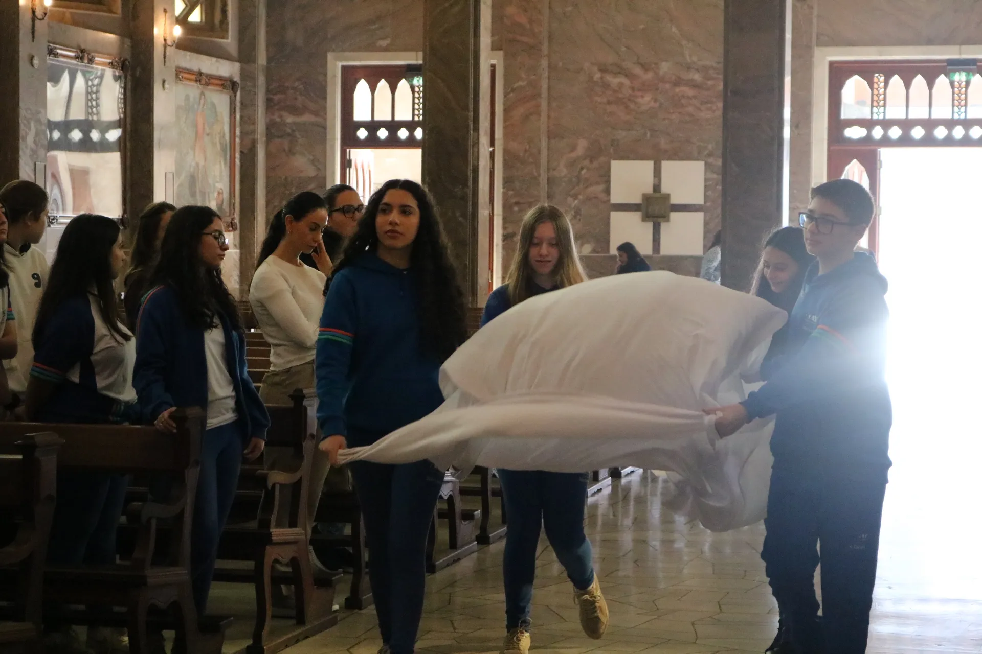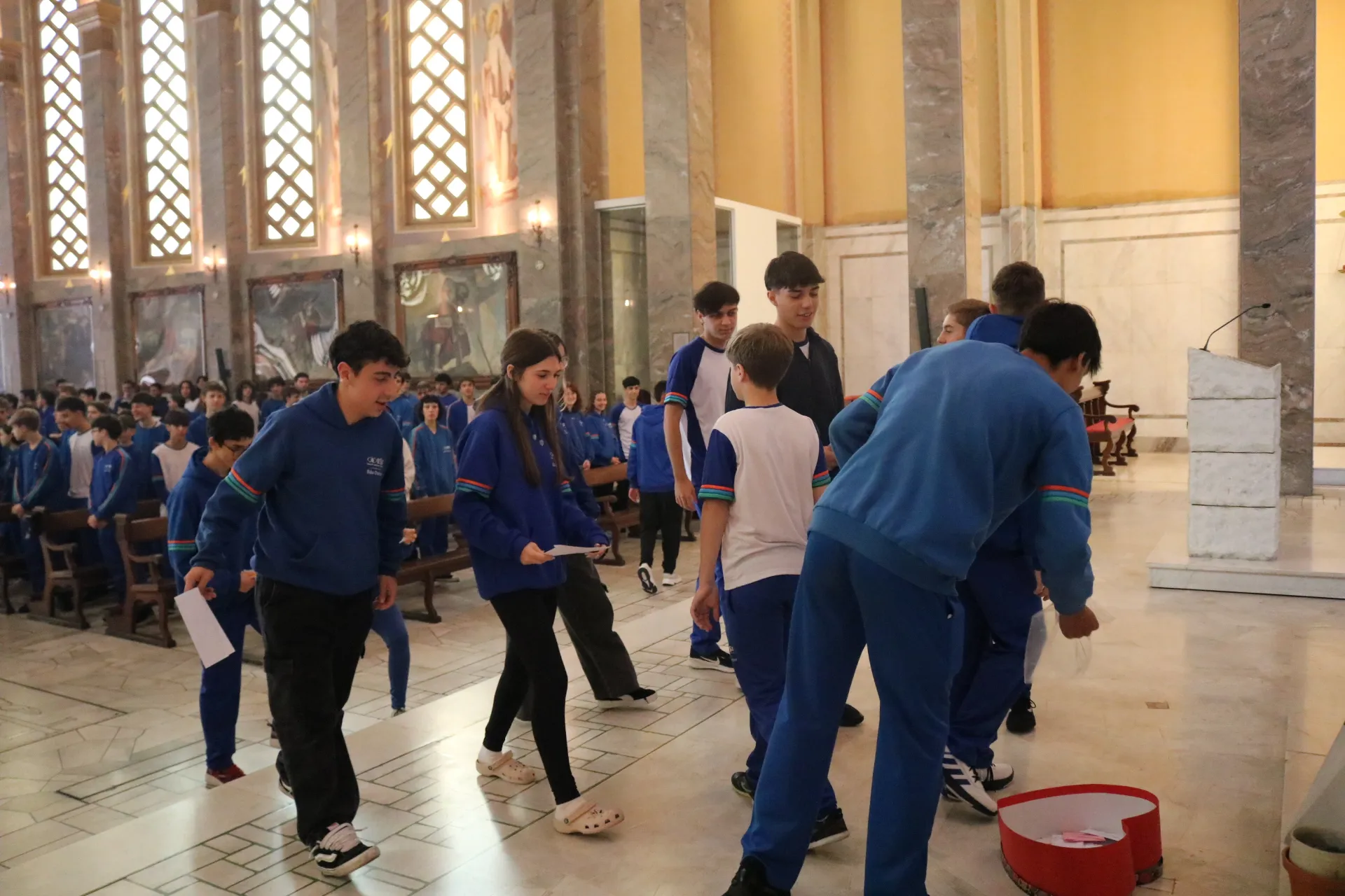 Os estudantes do 9º ano e Ensino Médio também viveram sua celebração de Páscoa na Igreja São Pelegrino, num encontro profundo com o mistério da fé cristã. 🙏🌿