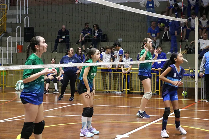 A disputa do Voleibol Feminino nos Jogos ESI 2025 foi marcada por partidas emocionantes e um alto nível técnico entre as equipes. A primeira modalidade a iniciar suas partidas, logo após a chegada das delegações em nossa escola, contou com a torcida de alunos da tarde, que foram liberados em seus períodos de educação física, para prestigiarem o início desta linda festa do esporte.