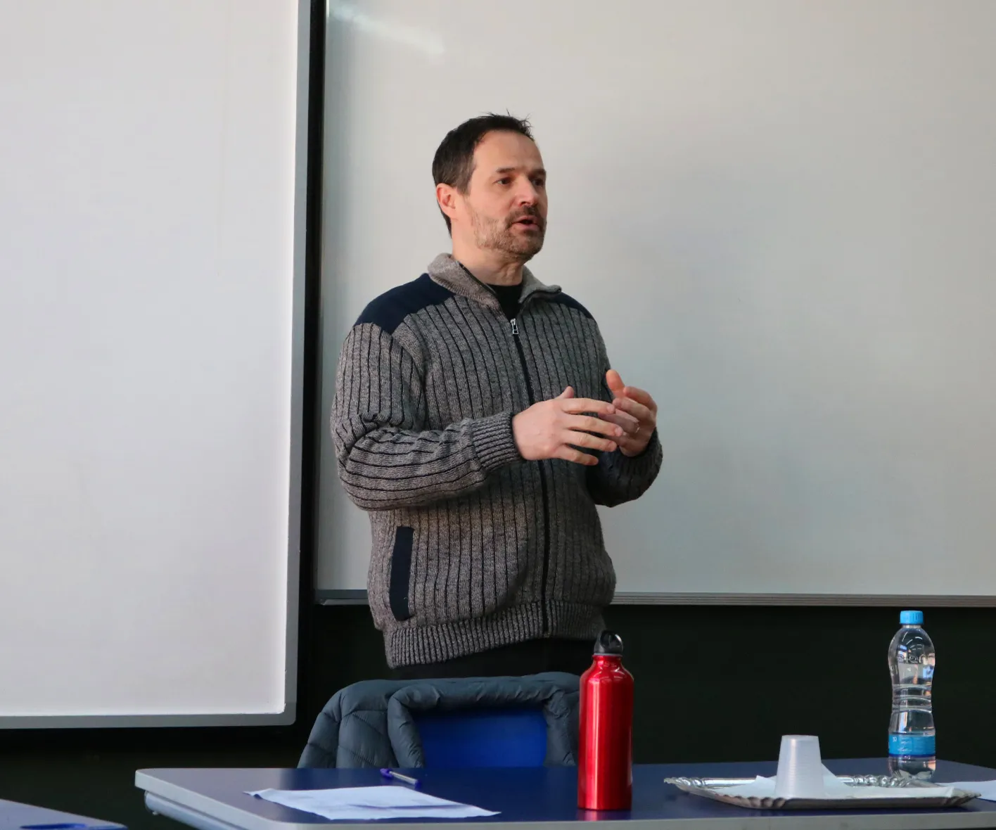 Na ocasião, os alunos contaram com a presença de Fábio Verruk, que é Coordenador de desenvolvimento de novos negócios e da Agência de Inovação UCSInova, que falou a importância de ser um empreendedor, independente da área de atuação, uma vez que os conhecimentos de mercado podem ser aplicados em diversas esferas.
