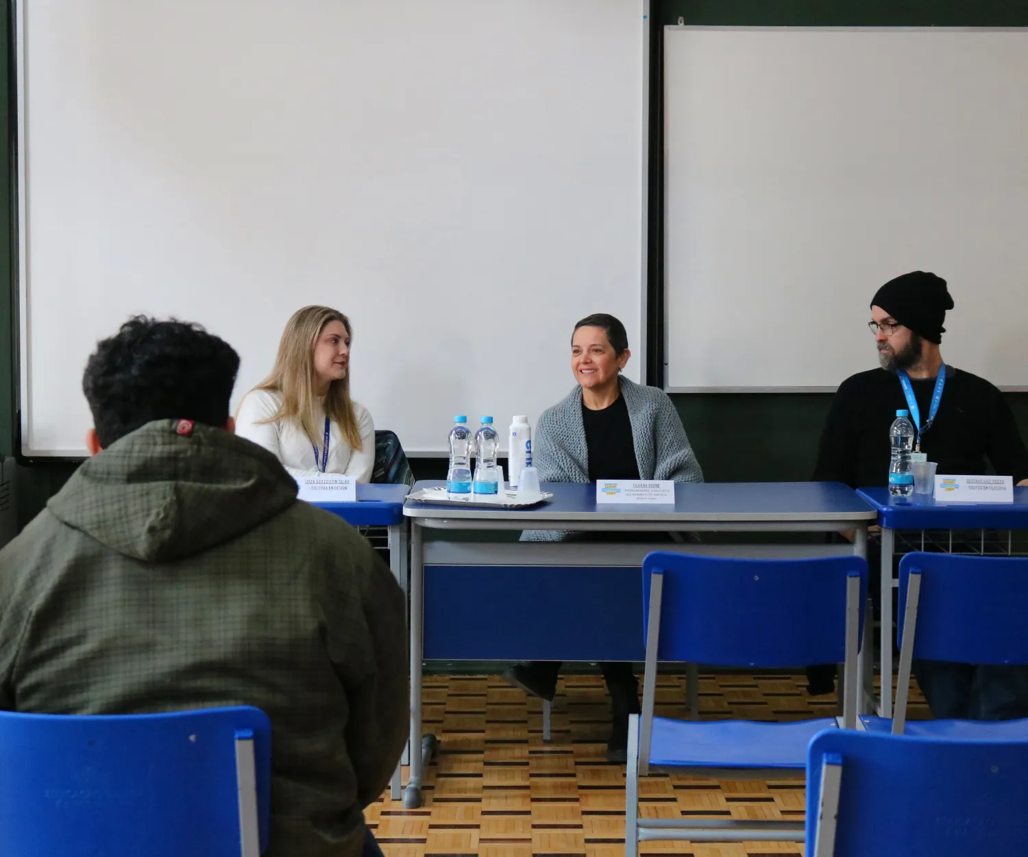Após a conversa com Fábio, os estudantes foram direcionados em grupos para área de conhecimento, de acordo com seu interesse para um bate-papo, esclarecendo eventuais dúvidas e também onde conversaram sobre os desafios encontrados no mercado de trabalho por eles.