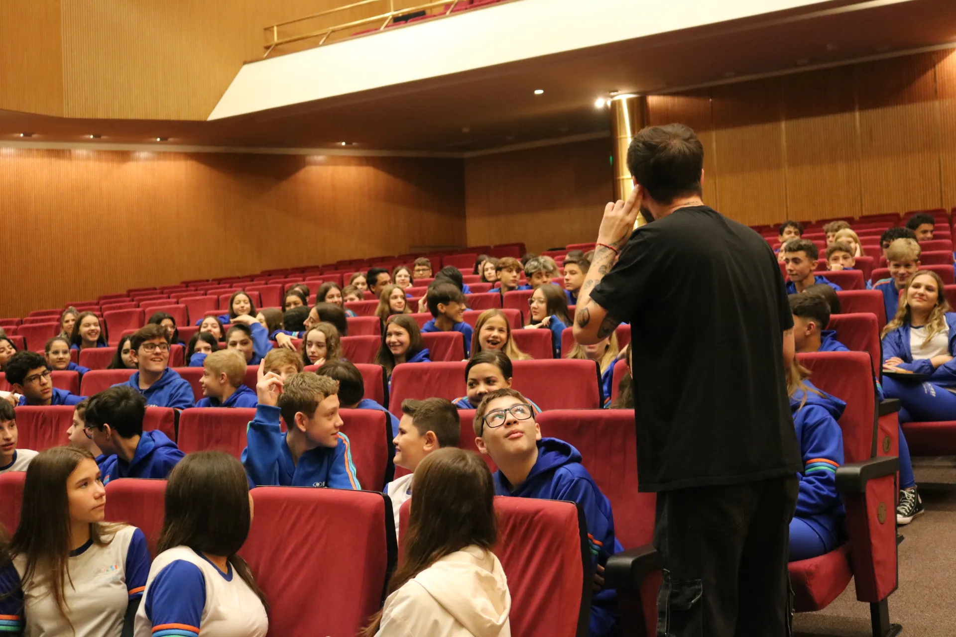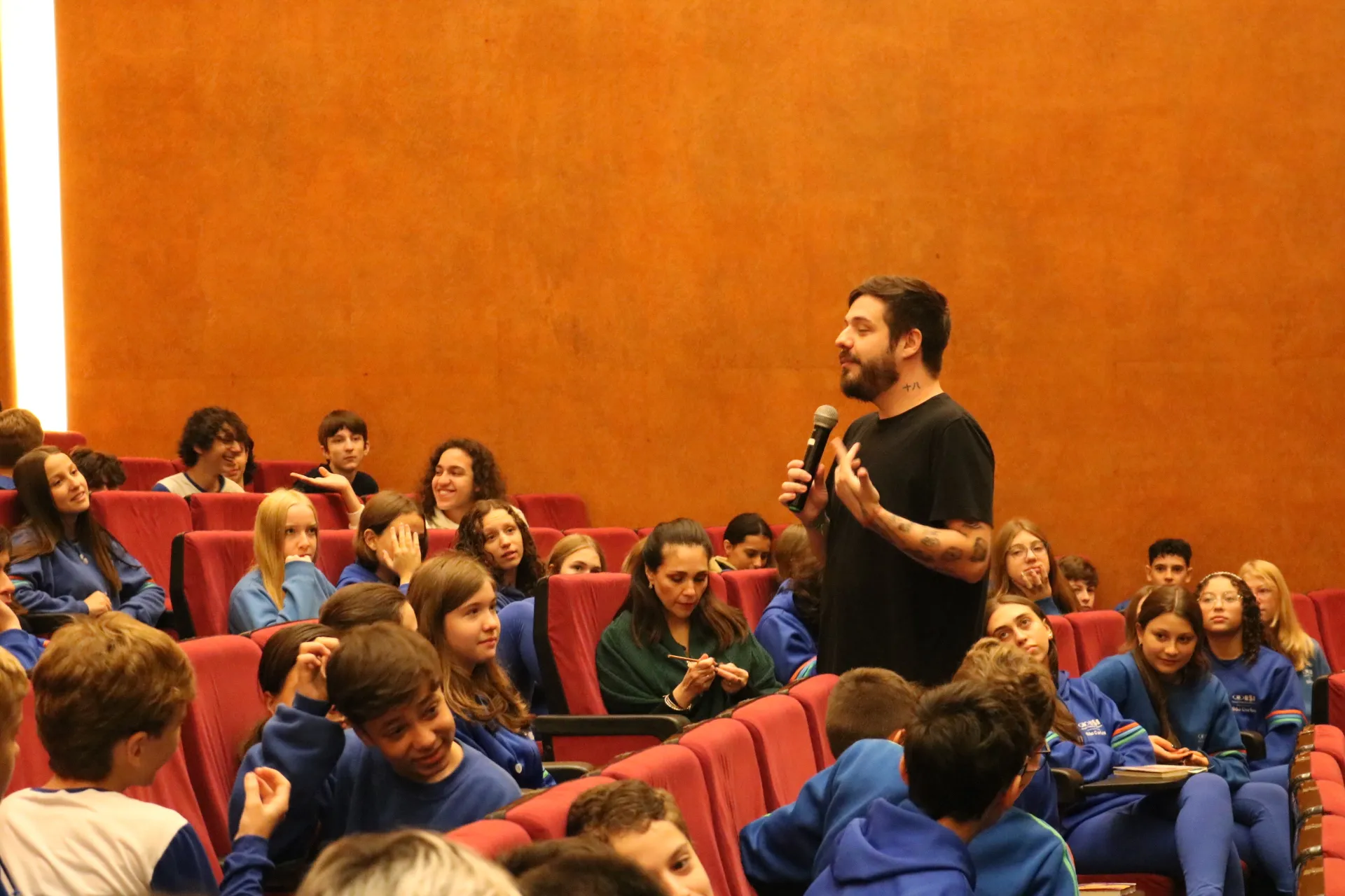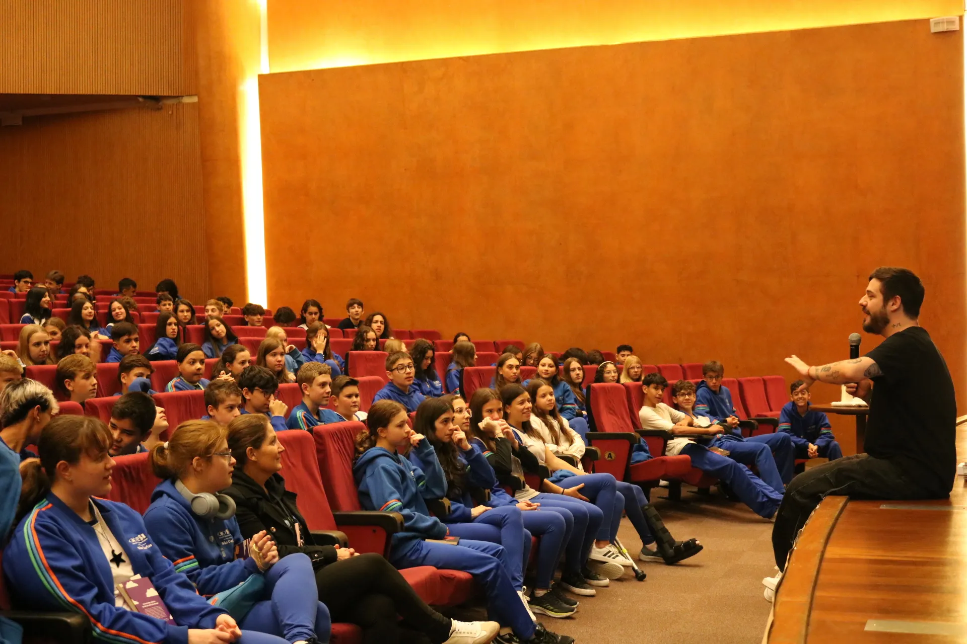 Nossos alunos dos 8º e 9º anos tiveram um bate-papo incrível com o escritor Pedro Guerra! Ele estava super animado em retornar ao Sanca e compartilhar suas experiências. Os livros do Pedro retratam a adolescência de forma tão real e próxima que a conversa fluiu naturalmente! 🤩