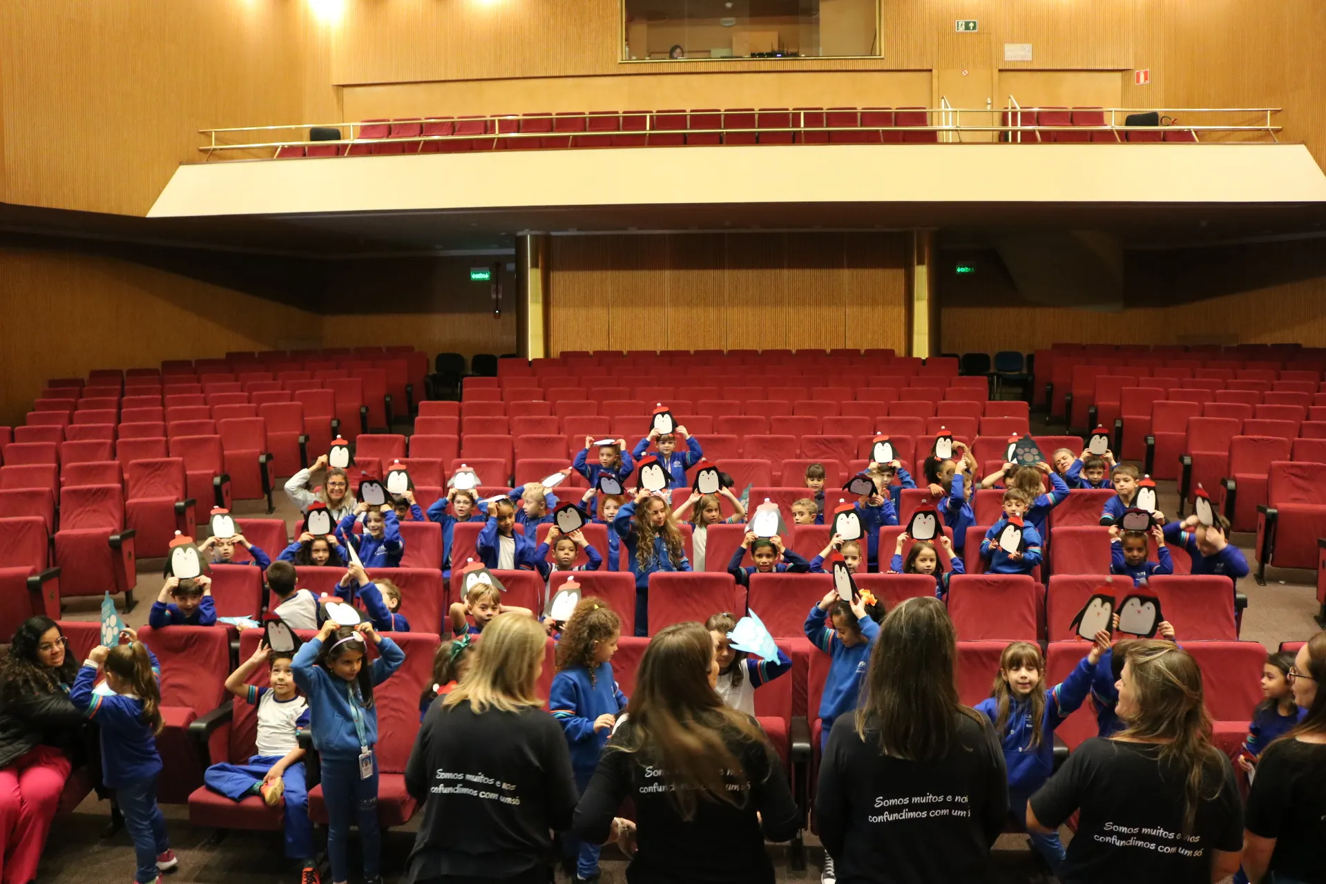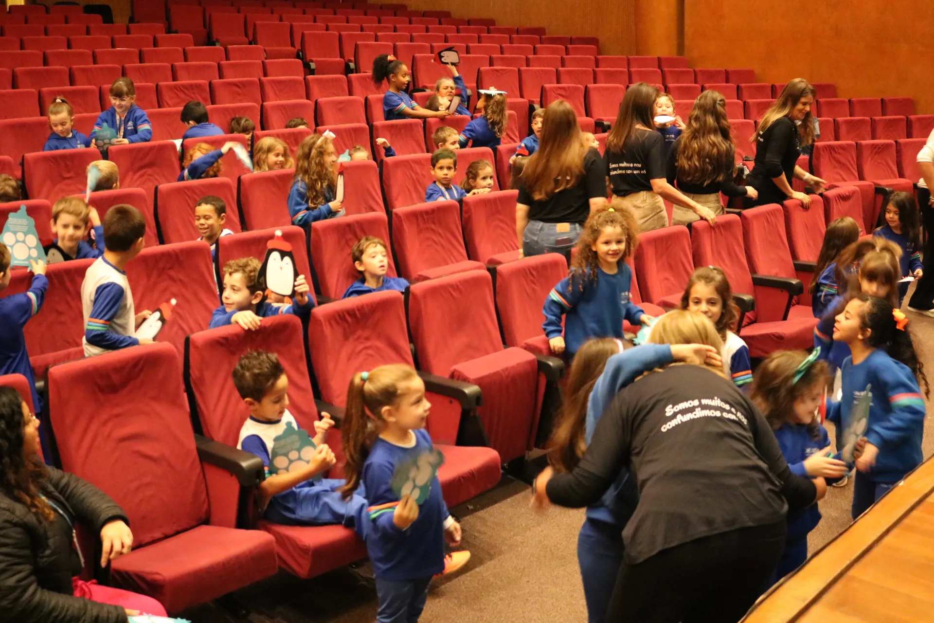 Já no período da tarde, foi a vez dos nossos pequenos brilharem! ✨ Os alunos do Ensino Fundamental Anos Iniciais participaram de uma contação de história inesquecível com o Instituto Flávio Luis Ferrarini. Conheceram a história de 'Pingo', que conquistou a todos: o pequeno pinguim superou seus medos, convidando os estudantes a refletirem sobre coragem, superação e protagonismo! 🐧❤️