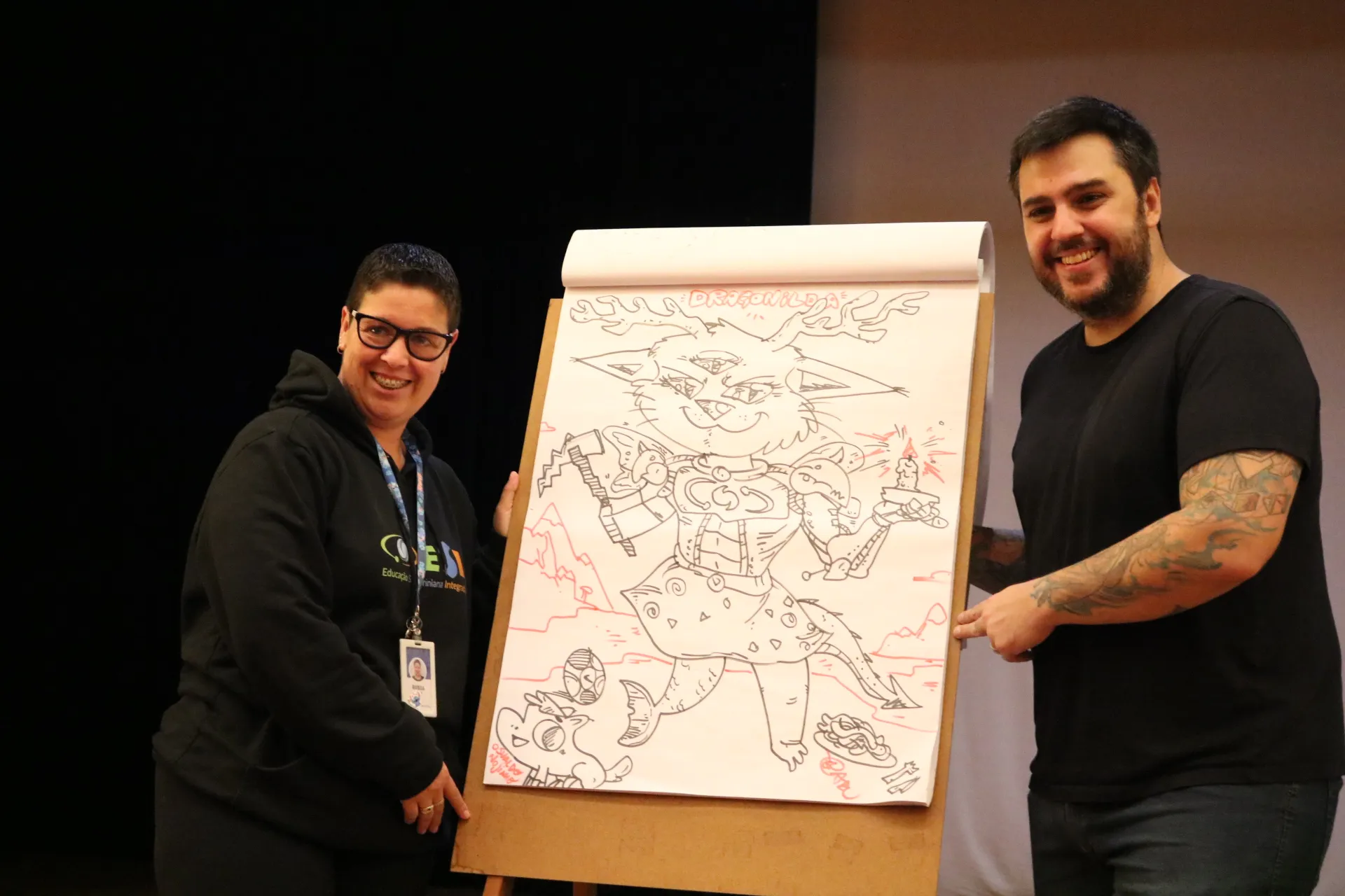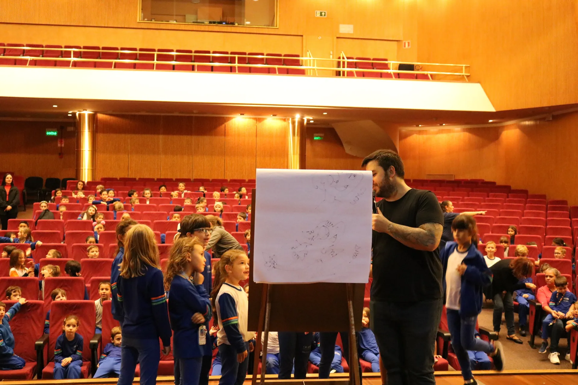 Em seguida, o talentoso Cadu dos Livros trouxe o mundo mágico da ilustração para os nossos pequenos! Com mais de 74 livros infantis escritos e ilustrados por ele, Cadu encantou os alunos do Ensino Fundamental Anos Iniciais com sua trajetória inspiradora. A criatividade tomou conta! Nossos alunos do 1º, 2º e 3º ano criaram personagens incríveis, inventando cada parte do corpo em grupo, enquanto os alunos do 4º e 5º ano se divertiram criando histórias em quadrinhos super animadas! ✍️🎨