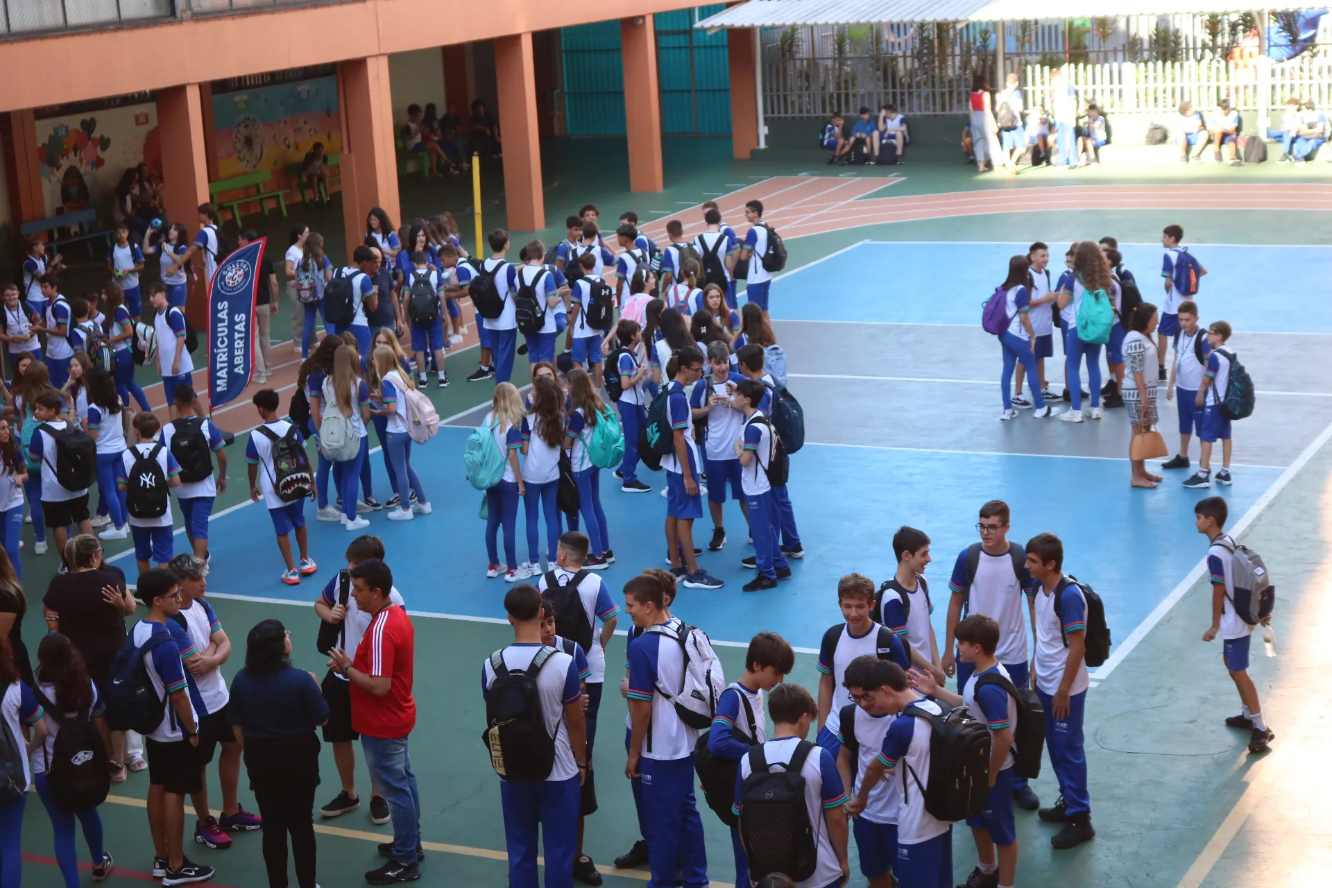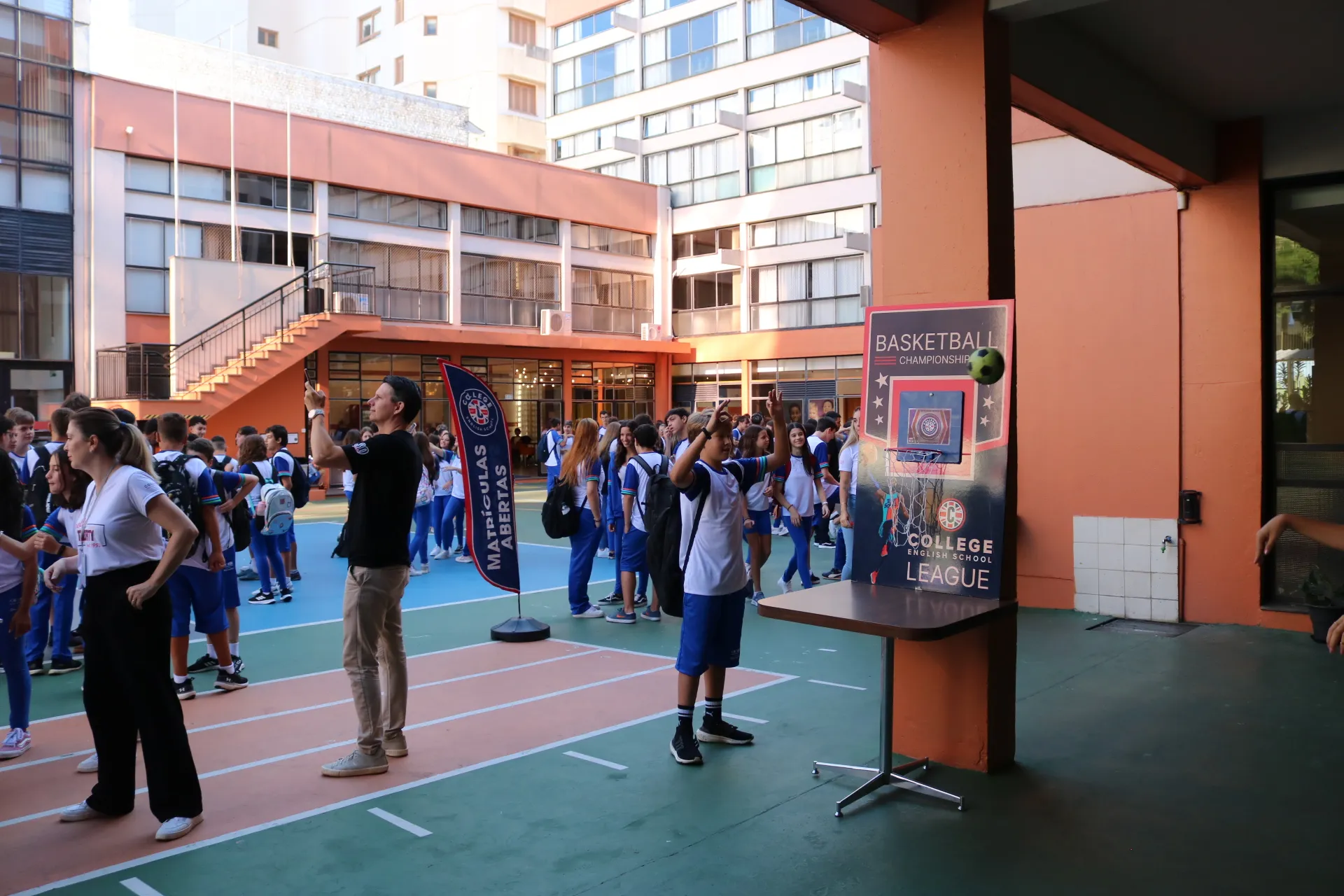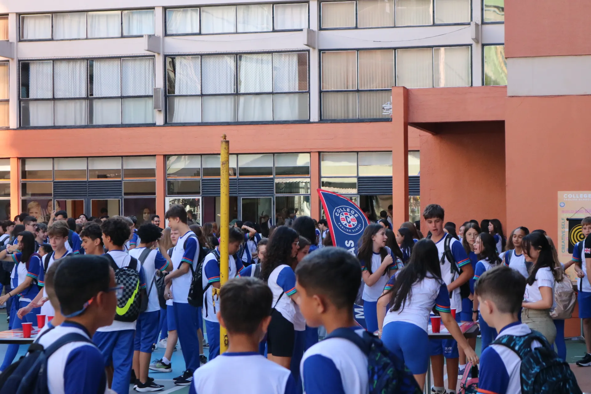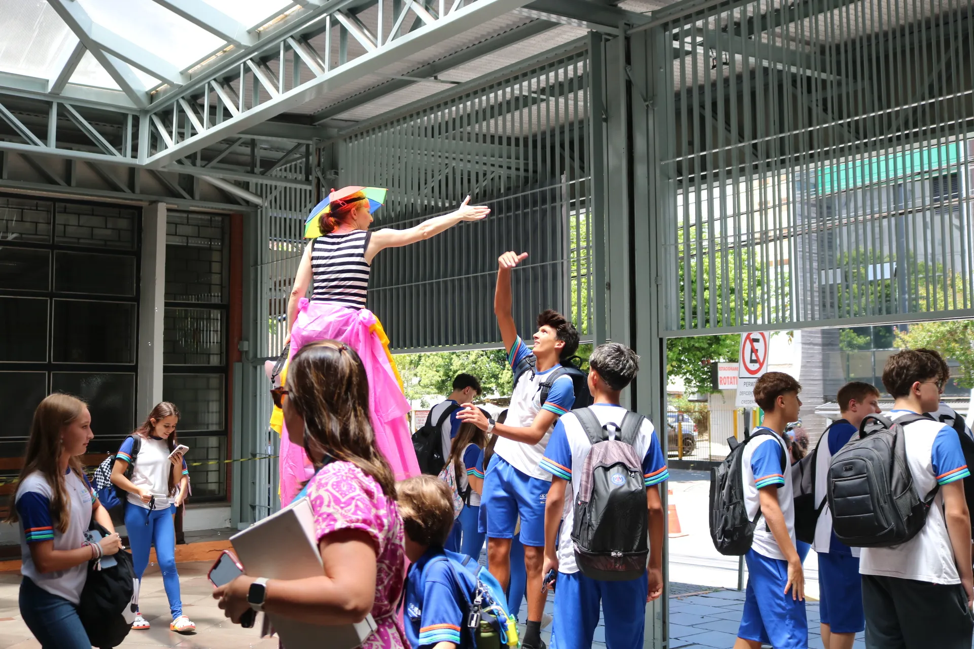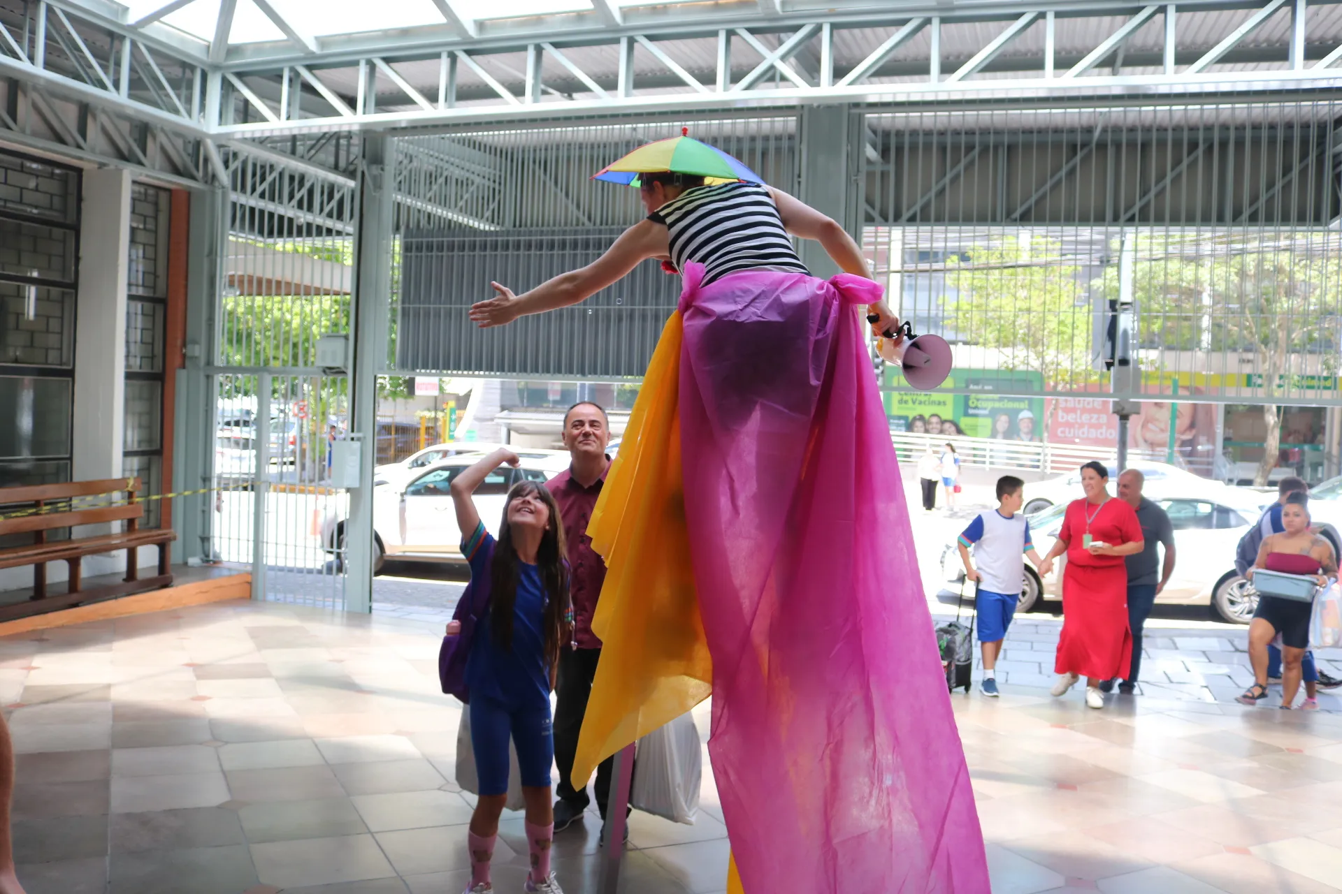 Já na recepção dos alunos da tarde – do Maternal, Educação Infantil e Ensino Fundamental – Anos Iniciais, a magia tomou conta! ✨🎭 Com a energia contagiante das animadoras, pernas de pau e bolhas de sabão, nossos pequenos foram recebidos com muita alegria e encantamento. E claro, a College também esteve presente, tornando o momento ainda mais especial.